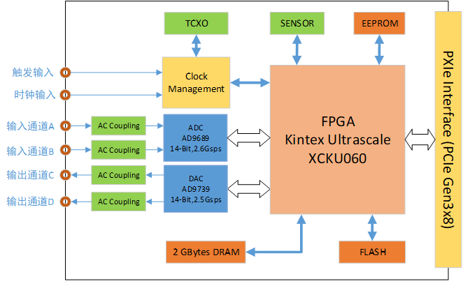 TX4770(PXIe采集回放卡,2ch,14bit,2.6Gsps ADC,2ch,14bit,2.5Gsps DAC)