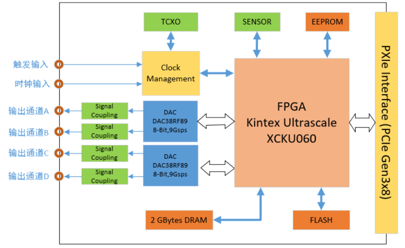 DX2490(PXIe回放卡,2ch,8bit,9Gsps DAC)