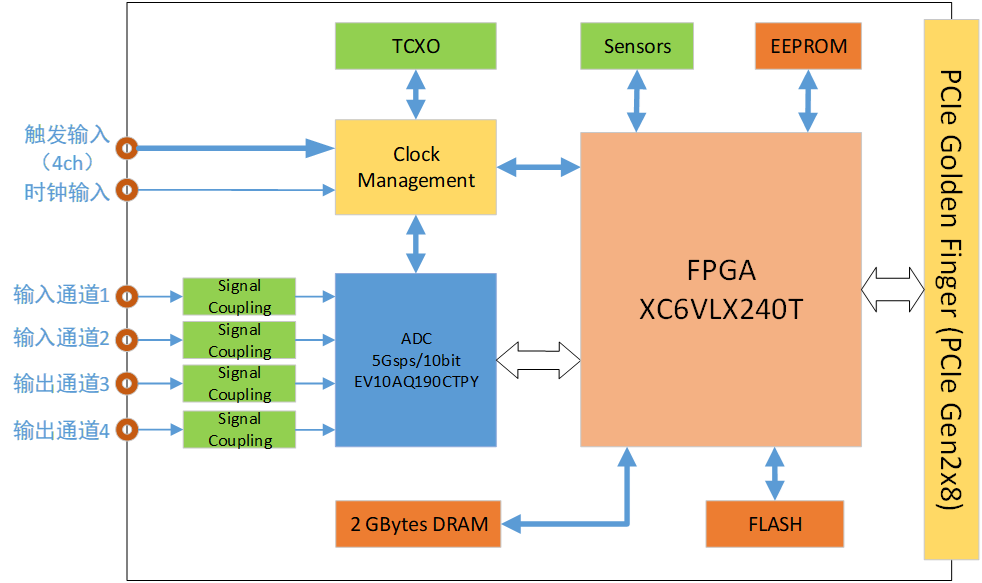 | 采样率 | 5Gsps@1ch | 2.5Gsps@2ch 1.25Gsps@4ch |