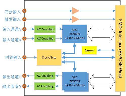 M34771(FMC采集回放子卡,2ch,14bit,2.5Gsps ADC,2ch,14bit,2.5Gsps DAC)